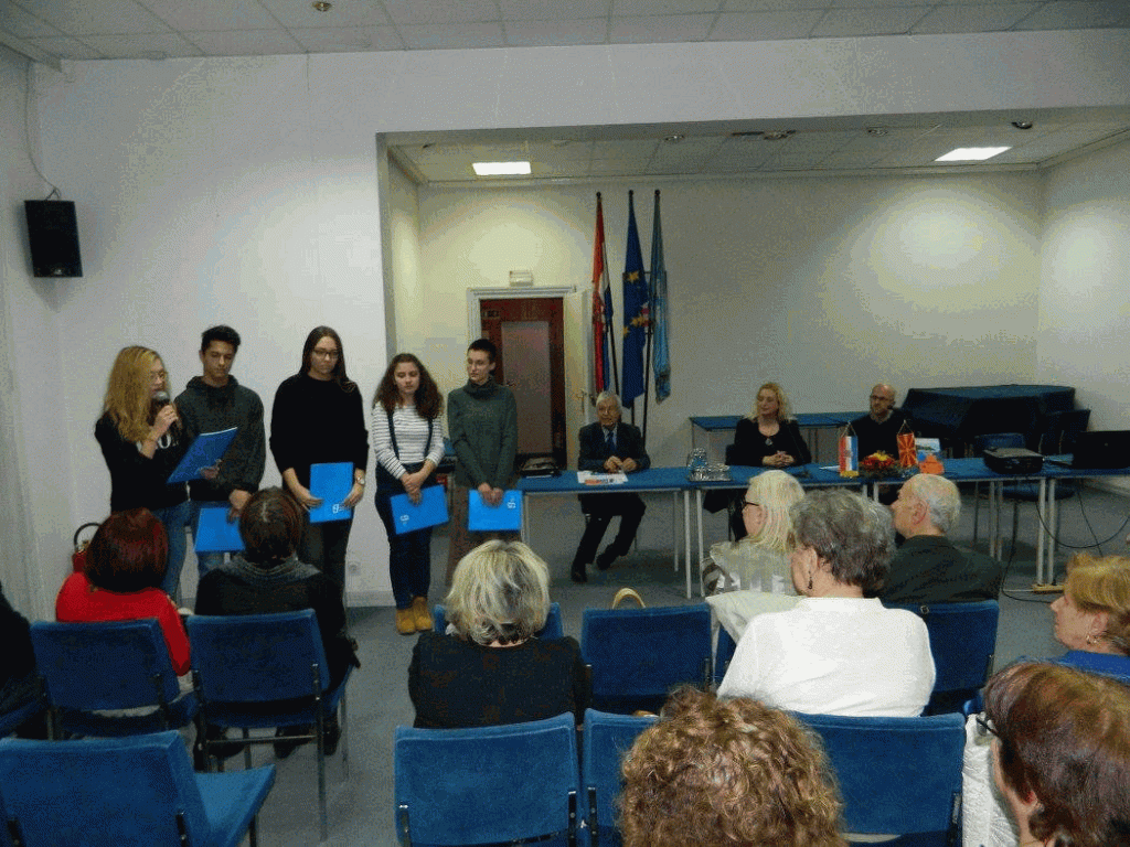 Dana 22.11.2017. godine u 19 sati smo posjetili Tribinu grada Zagreba gdje se održavala promocija knjige “Makedonske legende i predaje” priređivača Vasila Tocinovskog. Knjigu je s makedonskog na hrvatski preveo Ivica Baković. Nakon kratkog uvoda, čitali smo ulomke iz knjige za koju su ilustracije također napravili učenici koji pohađaju nastavu makedonskog jezika i kulture u Prvoj gimnaziji.