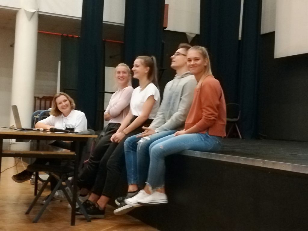 Spomenuli su da je I. gimnazija dobitnica Državne nagrade za volontiranje Nacionalnog odbora za razvoj volonterstva i Zahvalnice za sudjelovanje u manifestaciji “Hrvatska volontira 2019” zahavljujući nesebičnom angažmanu naših volontera. Najavili su niz novih volonterskih aktivnosti i humanitarnih akcija te pozvali naše prvaše da se pridruže.