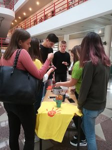 U četvrtak 17.10.2019. Volonterski klub I.gimnazije uspješno je proveo humanitarnu akciju “Solidarnost na djelu 2019”.   Uz humanu gestu i donaciju od 5 kn,   učenici su dobili grafitnu olovku s porukom “Volim pomagati!” i time doprinijeli prikupljanju novčanih sredstava za potrebite te uspješnijoj provedbi socijalne politike Grada Zagreba.