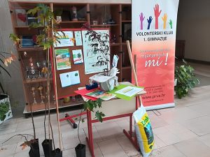U petak 25. 10. 2019. u organizaciji Volonterskog kluba I. gimnazije, naša škola je uspješno sudjelovala u ekološkoj akciji Dani kolektivne sadnje drveća u Hrvatskoj 2019 “Zasadi drvo, ne budi panj”. Jedan patuljasti crveni javor i dvije mladice šarenog likvidambra, od danas, krase glavni prilaz našoj školi.