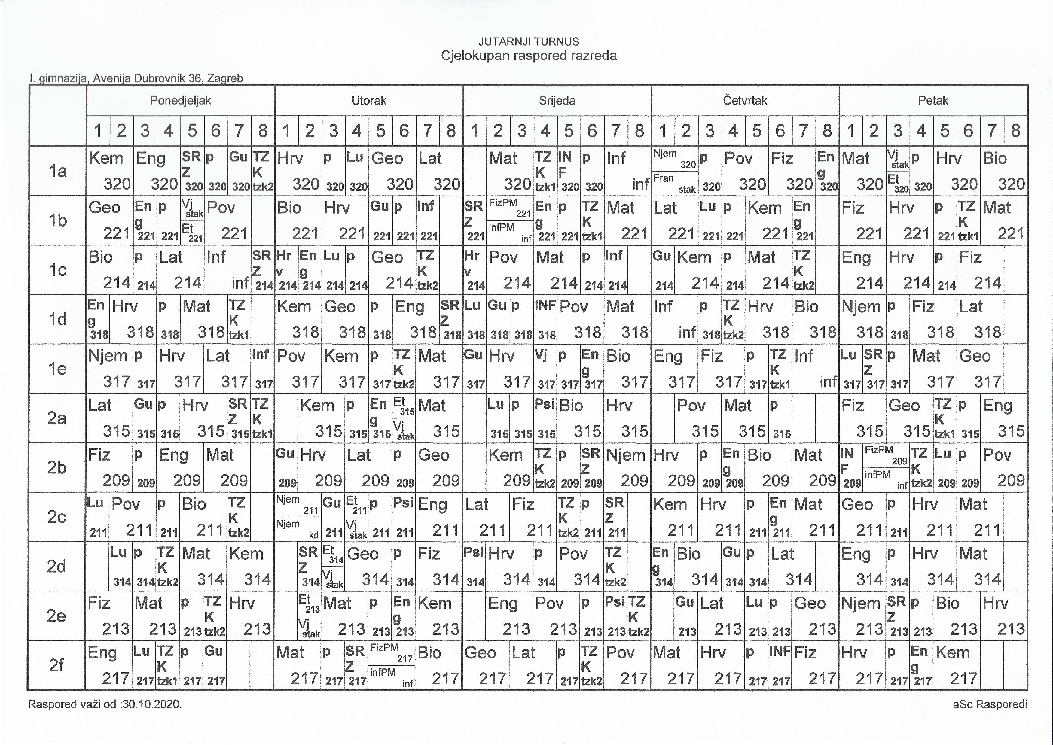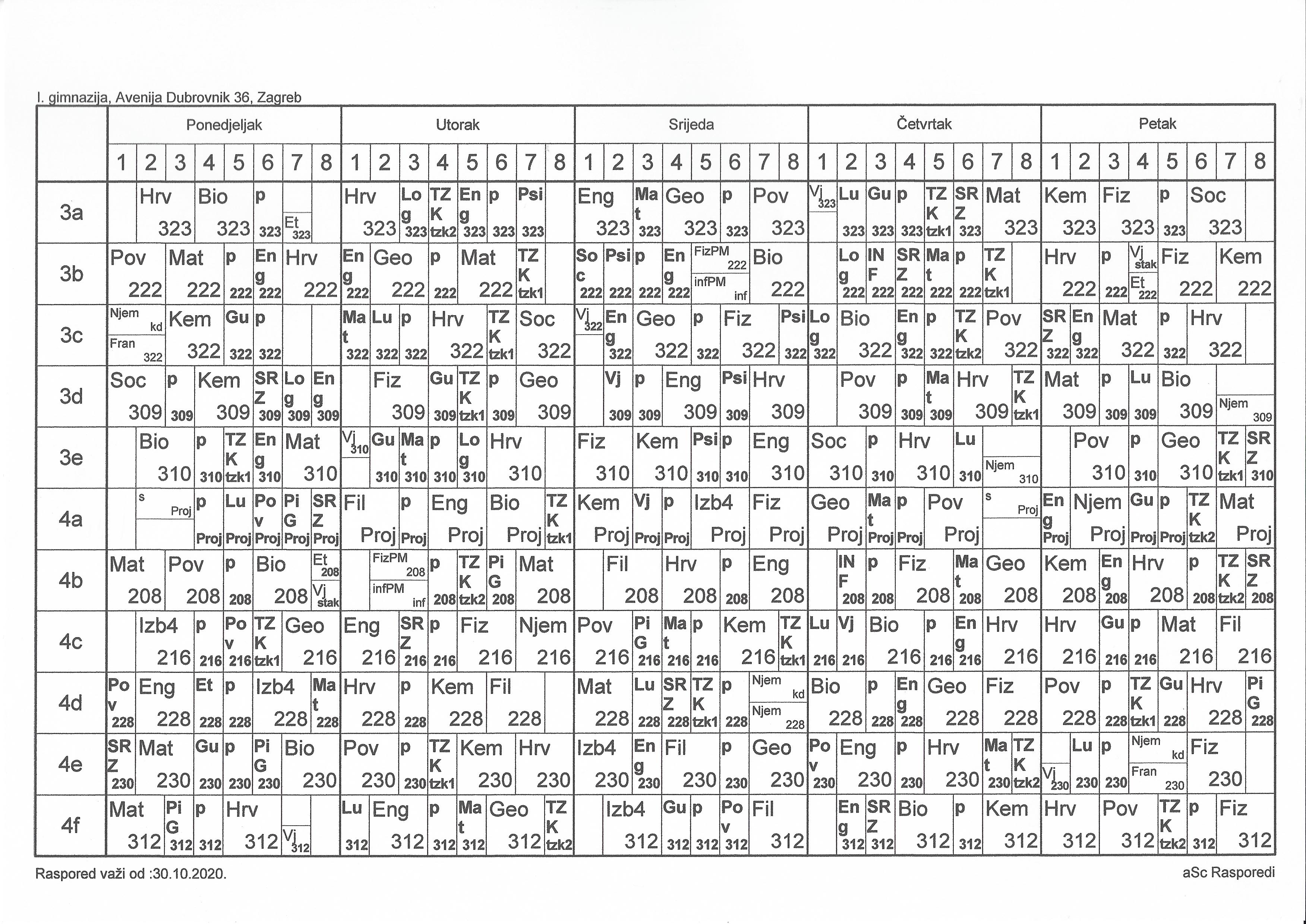 30. listopada 2020. Željka GregorinNajnovije vijesti, Raspored sati