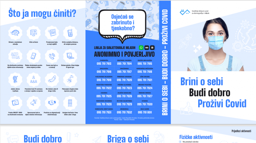 U suradnji Središnjeg državnog ureda za demografiju i Hrvatske psihološke komore pokrenut je preventivni projekt za mlade “Budi dobro-Brini o sebi-Proživi Covid”.