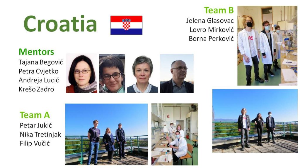 Mentori koji su sudjelovali u odabiru i pripremama učenika, te pripremi laboratorija i prijevodima zadataka na natjecanju djelatnici su Prirodoslovno-matematičkog fakulteta (PMF-a) Sveučilišta u Zagrebu: Tajana Begović (kemija), Andreja Lucić i Petra Cvjetko (biologija) i Krešo Zadro (fizika). Sudjelovanje naših timova na Olimpijadi financiralo je Ministarstvo znanosti i obrazovanja RH.