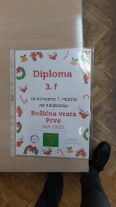 Od 29. 11. do 8. 12. 2021. trajao je natječaj pod nazivom Božićna vrata Prve. Naši učenici su se jako potrudili i teško je bilo odabrati najbolja vrata.