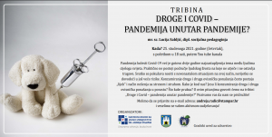 Prvu tribina“Droge i COVID – pandemija unutar pandemije?“ održana 25. studenoga 2021. putem YouTube kanala vodila je mr.sc. Lucija Sabljić, dipl. socijalna pedagoginja. Pandemija bolesti Covid-19 već je gotovo dvije godine najzastupljenija tema među ljudima cijeloga svijeta. Praktično ne postoji područje ljudskog života na koje ne utječe i ne ostavlja tragove. Svatko se pokušava nositi s novonastalom situacijom na svoj način, nerijetko se dovodeći u još veće rizike. Konzumiranje droga i druga ovisnička ponašanja često postaju „lijek“ i način nošenja sa stresom i strahom. Kako je kod nas? Jesu li konzumiranje droga i druga ovisnička ponašanja u porastu? Što kaže praksa? Odgovore na ova pitanja možete pogledati na poveznici.