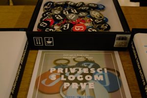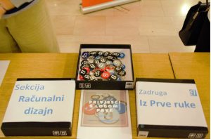 Sekcija Računalni dizajn prodavala je privjeske s logom škole. Bila je to prilika da naši učenici dođu do svog primjerka. Neki od njih kupovali su i za prijatelje koji više ne pohađaju našu školu. Izbor je bio velik pa je problem predstavljalo koju boju odabrati ili uzeti privjesak s ispunom ili bez ispune. Drago nam je što je odaziv bio velik i što učenici s ponosom pokazuju logo škole.