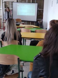 U okviru suradnje s bivšim učenicima I. gimnazije,  unutar Školskog programa profesionalnog informiranja i usmjeravanja, u utorak 15. ožujka 2022. održana je prezentacija  jednog od najtraženijih studija – studija logopedije na Edukacijsko – rehabilitacijskom fakultetu u Zagrebu. Prezentaciju je održala bivša učenica I. gimnazije, sada studentica 1. godine studija logopedije na ERF-u Jelena Briševac. Tom prilikom,  Jelena je s grupom zainteresiranih maturantica, podijelila korisne informacije oko kriterija upisa, priprema za ispite državne mature i studija logopedije.