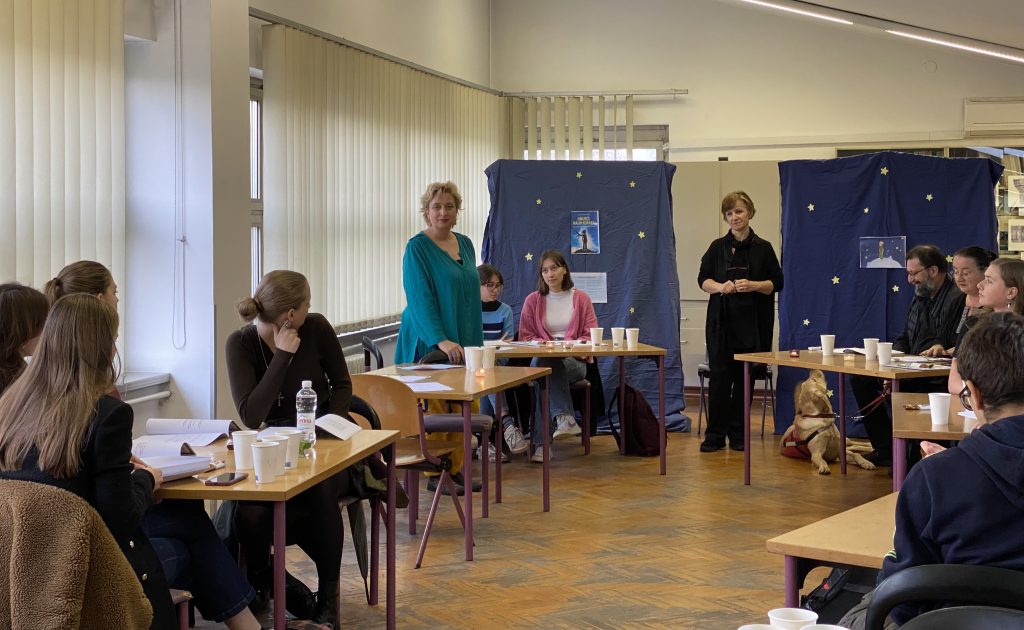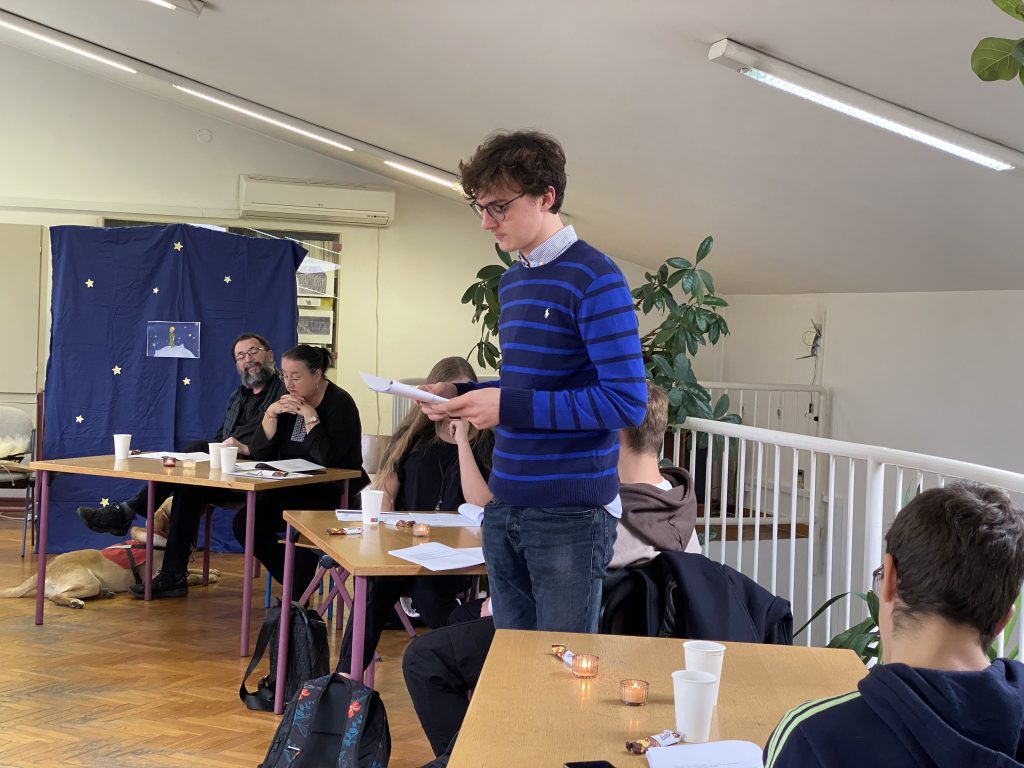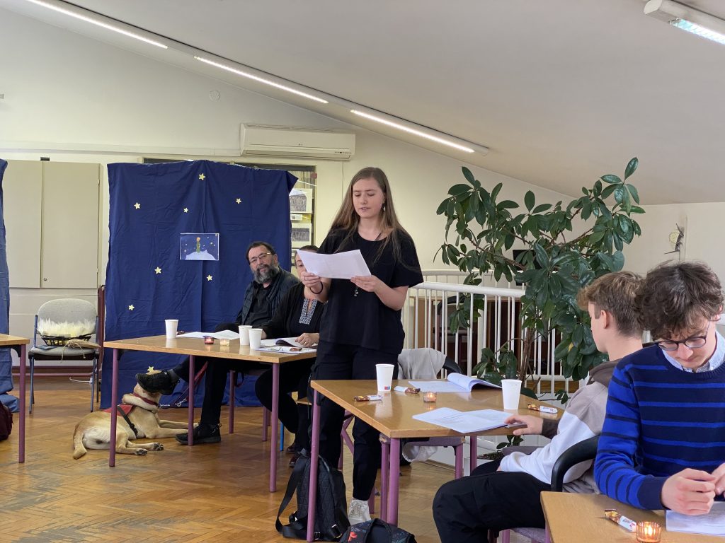 Mjesec hrvatske knjige i Godinu mladih obilježili smo 15.11.2022. zajedničkom aktivnošću školskih knjižnica I. gimnazije i Tutuša Brezovačkog. U intimnoj atmosferi uz ledeni čaj i slatkiše, učenici i učenice dviju škola čitali su ulomke Malog princa na engleskom, mađarskom, korejskom, slovenskom, makedonskom, španjolskom, francuskom, talijanskom, poljskom, njemačkom, ukrajinskom, bugarskom i na latinskom jeziku, ali i na hvarskoj čajkavštini i žminjskom dijalektu.