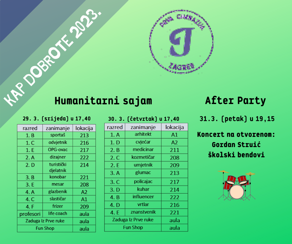 Trajat će tri dana, a učenici i djelatnici škole marljivo rade na osmišljavanju raznih aktivnosti. Tema ovogodišnje Kapi dobrote su zanimanja.