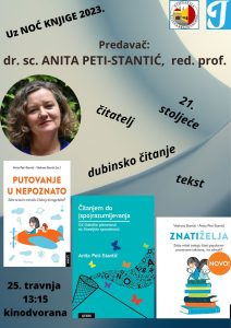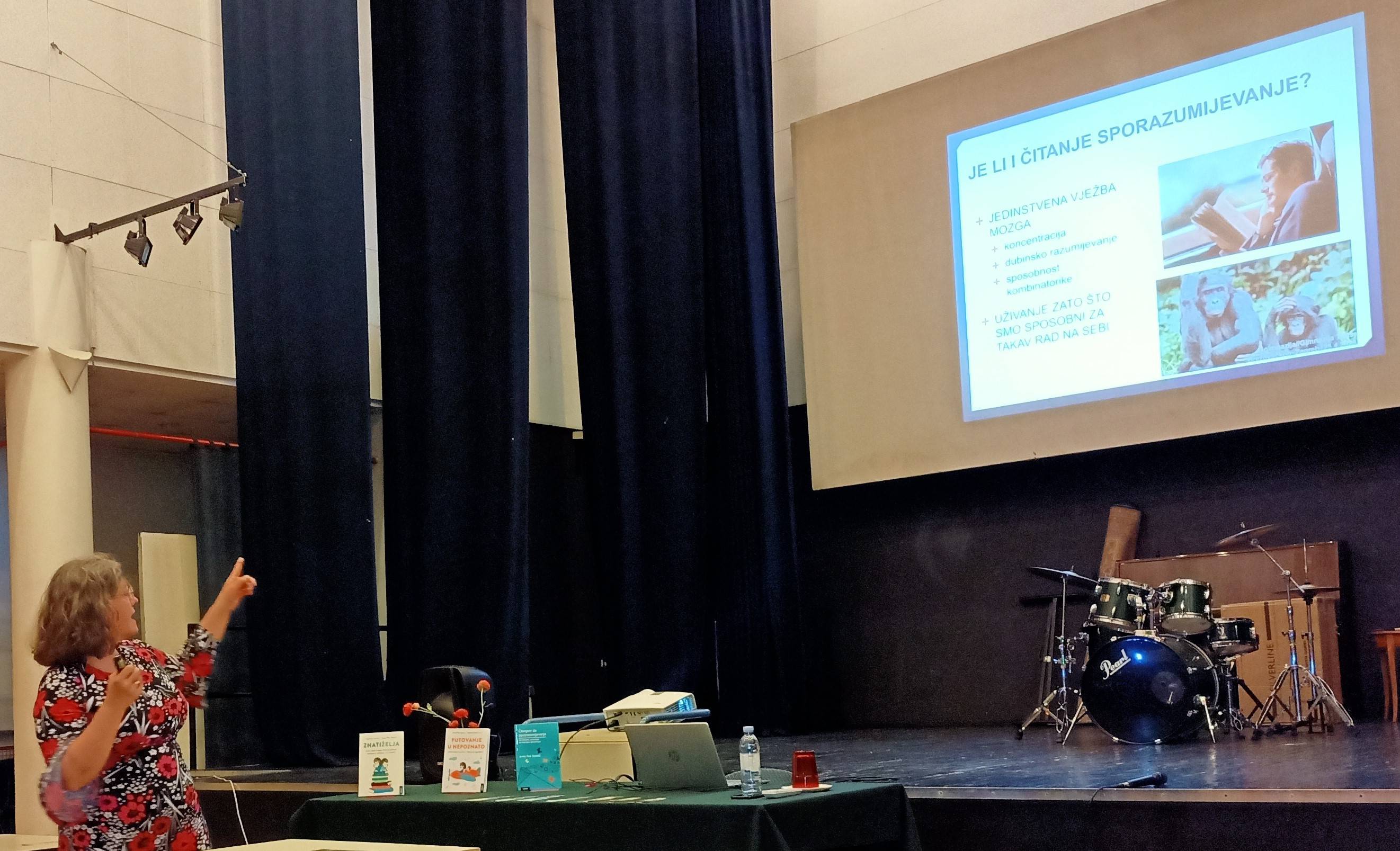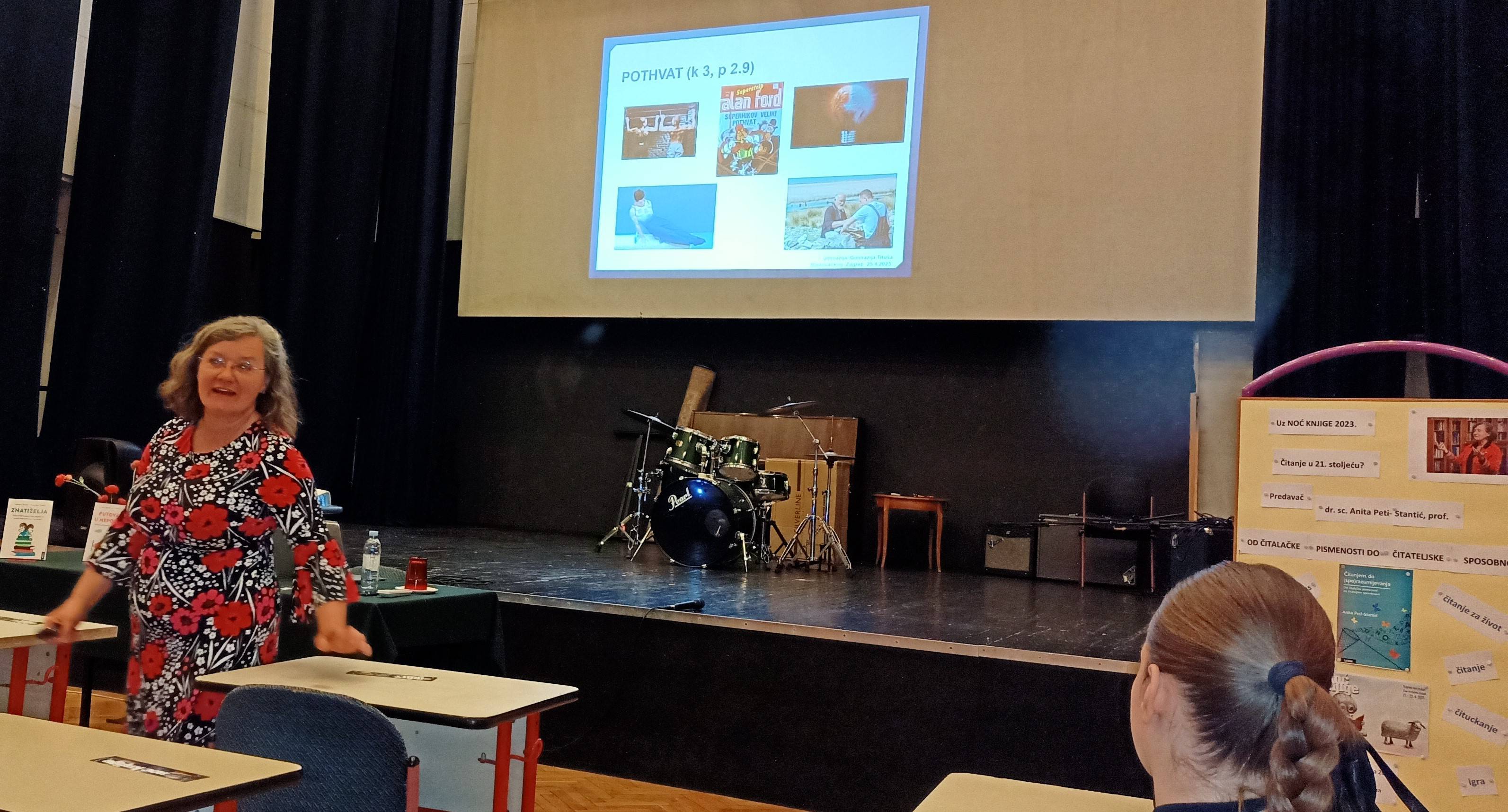 Dana 25. svibnja ugostili smo dr. sc. Anita Peti-Stantić, prof. koja je održala predavanje učenicima i profesorima I. gimnazije i Gimnazije Tituša Brezovačkog o važnosti čitanja u 21. stoljeću. Prof. Peti-Stantić je govorila o važnosti čitanja za razvoj mozga, širenje vokabulara, poboljšanje samopouzdanja te promjenu načina razmišljanja i procesuiranja informacija u mozgu. Naglasila je da je čitanje često zanemarena aktivnost u modernom društvu te da je važno motivirati djecu i mlade na čitanje kako bi razvijali svoje kognitivne sposobnosti. U digitalnom dobu, dostupnost informacija na mobitelu i internetu često dovodi do pitanja potrebe za čitanjem. Međutim, samo posjedovanje podataka nije dovoljno, budući da je važno i razmišljanje o tim podacima. Prethodna znanja, iskustva i navike kombiniranja informacija pomažu u prepoznavanju točnosti podataka na internetu. Također, ističe se važnost slobode u izboru literature te da čak i 15 minuta čitanja na dan može imati pozitivan učinak. Spomenula je i neuroznanstvena istraživanja koja su pokazala da čitanje poboljšava razvoj mozga te da je to ključno za razumijevanje složenijih koncepata.
