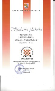 Tradicionalno u Varaždinu 3. i 4. svibnja održane su 66. glazbene svečanosti hrvatske mladeži gdje je nastupio i naš Djevojački zbor pod vodstvom prof. Kristine Vladušić. Djevojke su ostvarile izvrstan rezultat, 3. mjesto i Srebrnu plaketu za svoj nastup. Čestitamo učenicama i prof. Kristini Vladušić!
