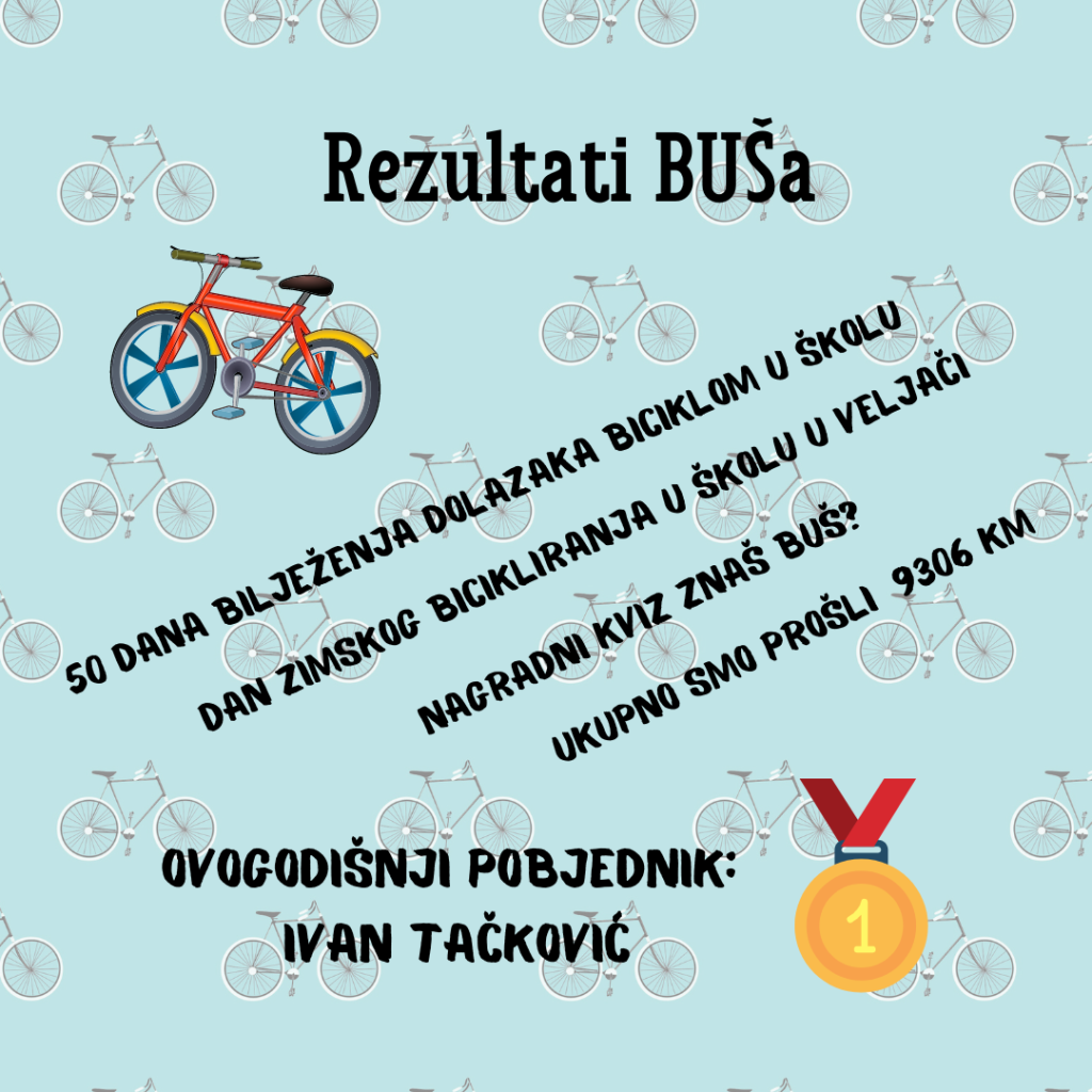 Uz 62 sudionika ovogodišnjeg BUŠa i prijeđenih ukupno 9306 km imamo pobjednika. To je Ivan Tačković, koji je napravio pravi podvig došavši u školu 30 puta biciklom, a pri tome je dnevno prevaljivao gotovo 50 km! I s prijeđenih 1470 km postavio apsolutni rekord projekta!