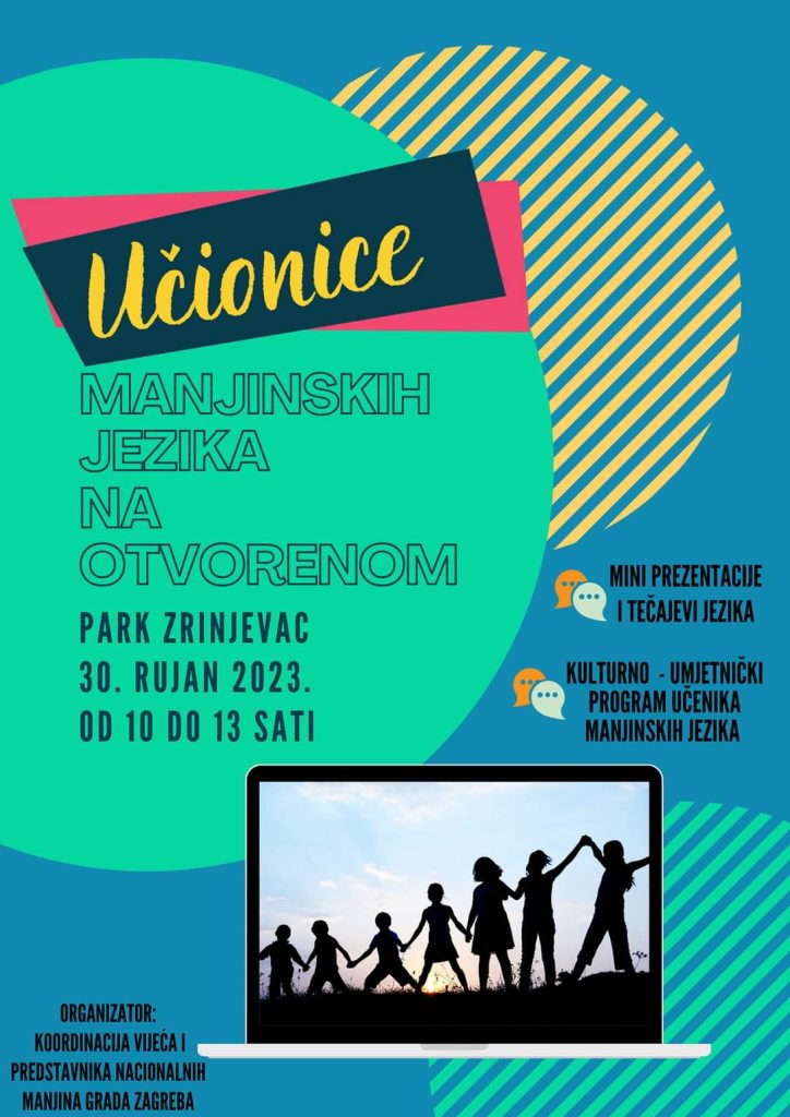 Dođite u subotu 30.9.2023. u Park Zrinjevac od 10 do 13 sati te u Učionicama manjinskih jezika naučite osnovne fraze na albanskom, bosanskom, češkom, hebrejskom, mađarskom, makedonskom, poljskom i ukrajinskom jeziku!