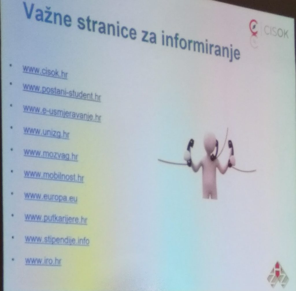 U ponedjeljak 23.10.2023. grupa prijavljenih maturanata i maturantica posjetila je Centar za informiranje i savjetovanje o karijeri CISOK. Sudjelovali su na grupnom informiranje “Važnost profesionalnog informiranja” i saznali o čemu je važno da vode računa pri odlučivanju o nastavku školovanja kako bi njihova odluka bila pravovremena i u skladu s njihovim sposobnostima, interesima i vrijednostima.
