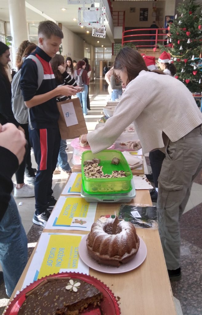 U ponedjeljak 18.12. 2023., pod nazivom Slatki dan, održano je nagradno natjecanje u božićnim slasticama i humanitarna prodaja slastica. Ukupno je prijavljeno 33 slastice, a žiri je kao najbolje odabrao Kljahota medenjake Marte Predrijevac 4.b i Tie Turčin 4.d kao prvu nagradu, tortu Neimenovana prof. Nine Matusine kao drugoplasiranu i Lukslasticu Luke Pankovića 1.b kao treću nagradu.