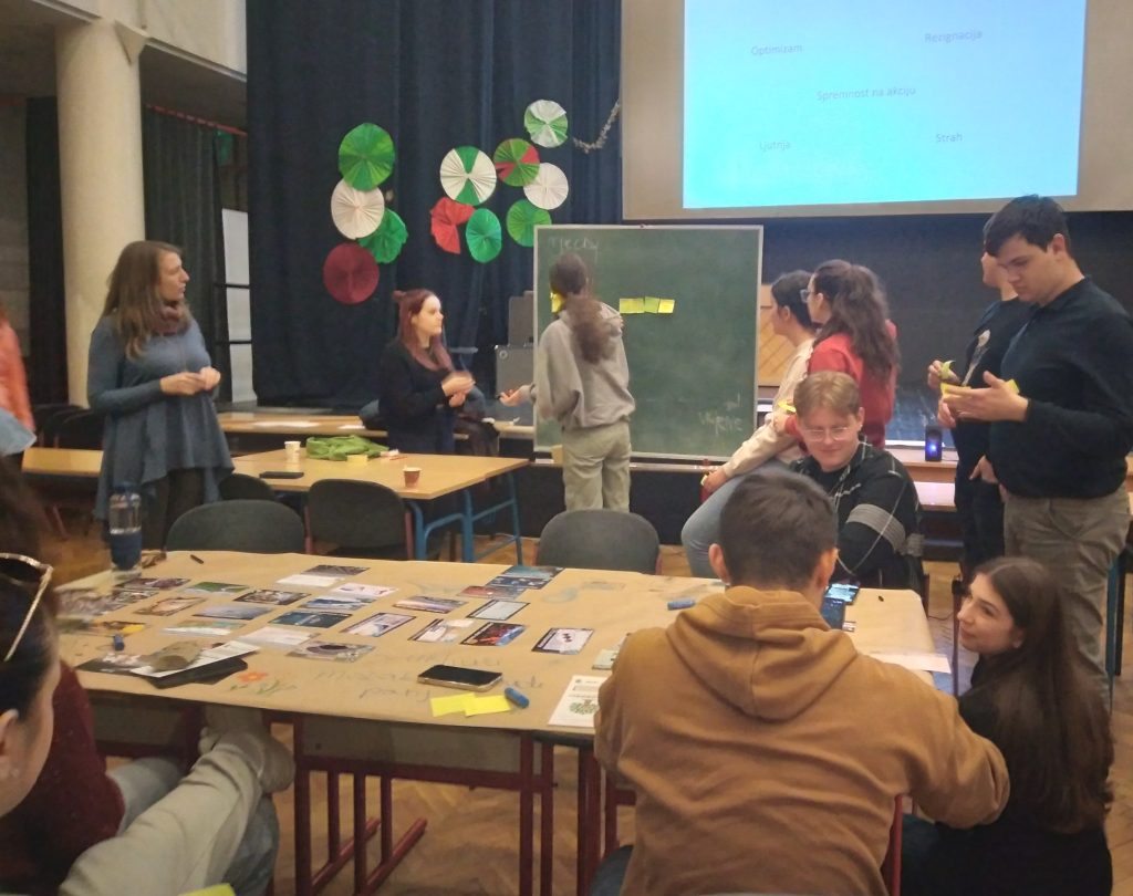 Tako je u srijedu 24.1. 2024. održana interaktivna, četverosatna radionica po međunarodnoj licenci “Klimatski kolaž” za grupu učenika/ica s nastave Poduzetništva i iz Volonterskog kluba.