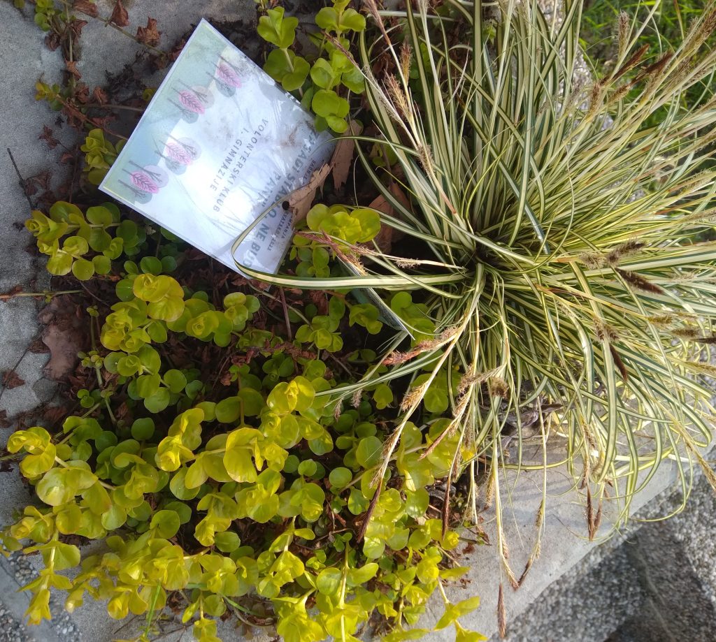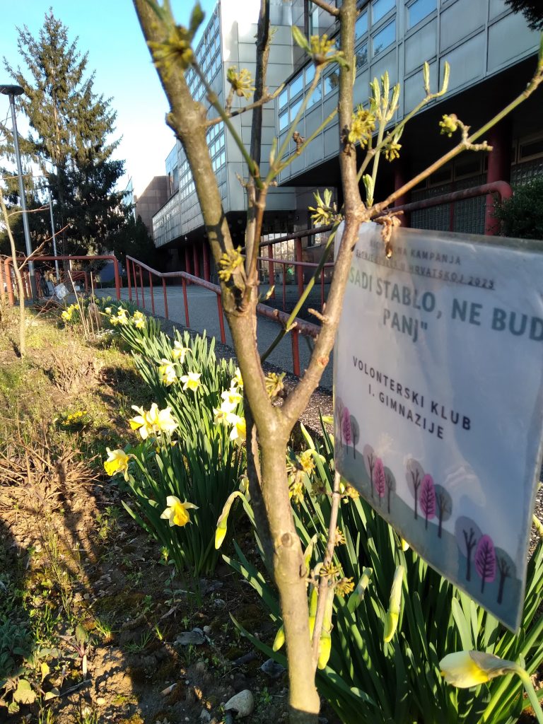 Uživajte u cvjetnim motivima našeg školskog okruženja o kojem brinu članovi/ice našeg Volonterskog kluba. Već pet godina zaredom, Volonterski klub I. gimnazije sudjeluje u Nacionalnoj kampanji “Dani kolektivne sadnje drveća”. U suradnji s kompanijama koje njeguju korporativno volonterstvo i daruju sadnice, tvrtka Valzor 2019.-2021., Ericsson 2022. i Decathlon 2023., pod stručnim vodstvom predsjednice udruge “Zasadi stablo, ne budi panj” A. M. Kramar, uređuju cvjetne gredice ispred glavnih ulaza i uljepšavaju prilaz našoj školi.