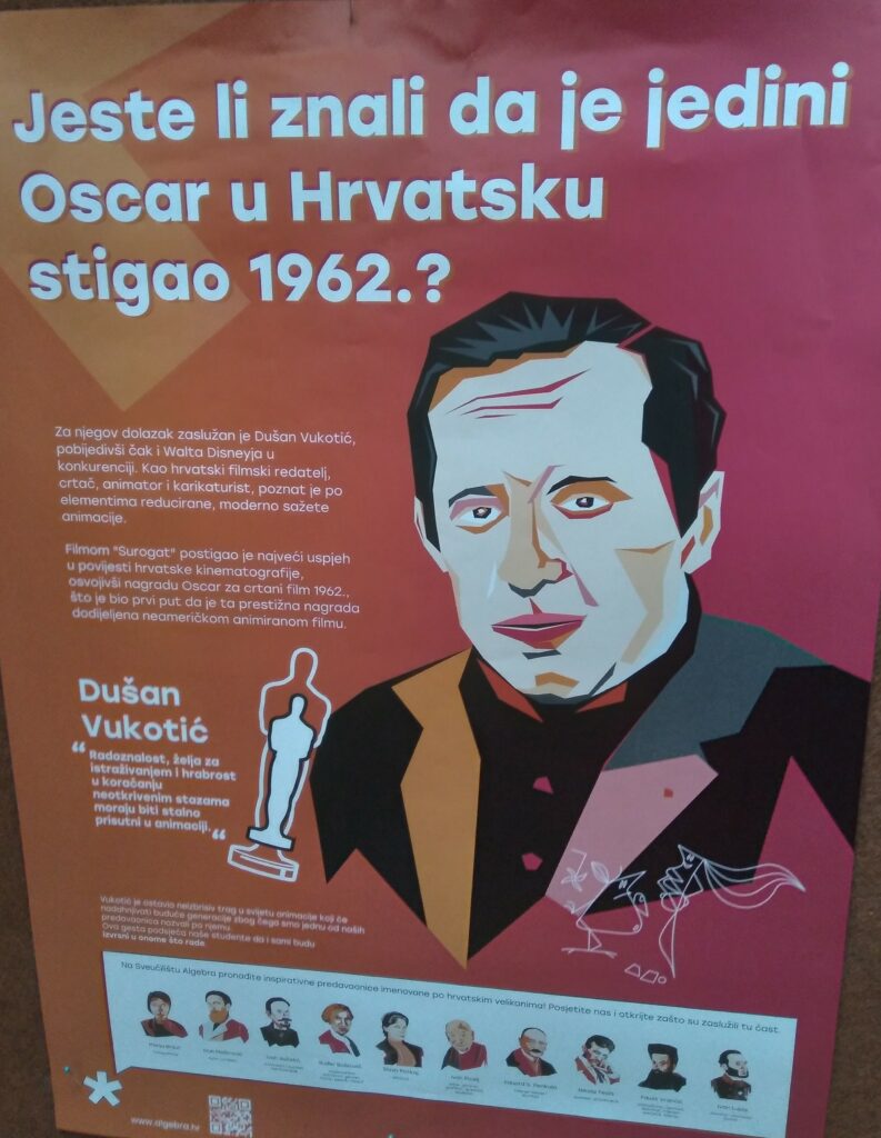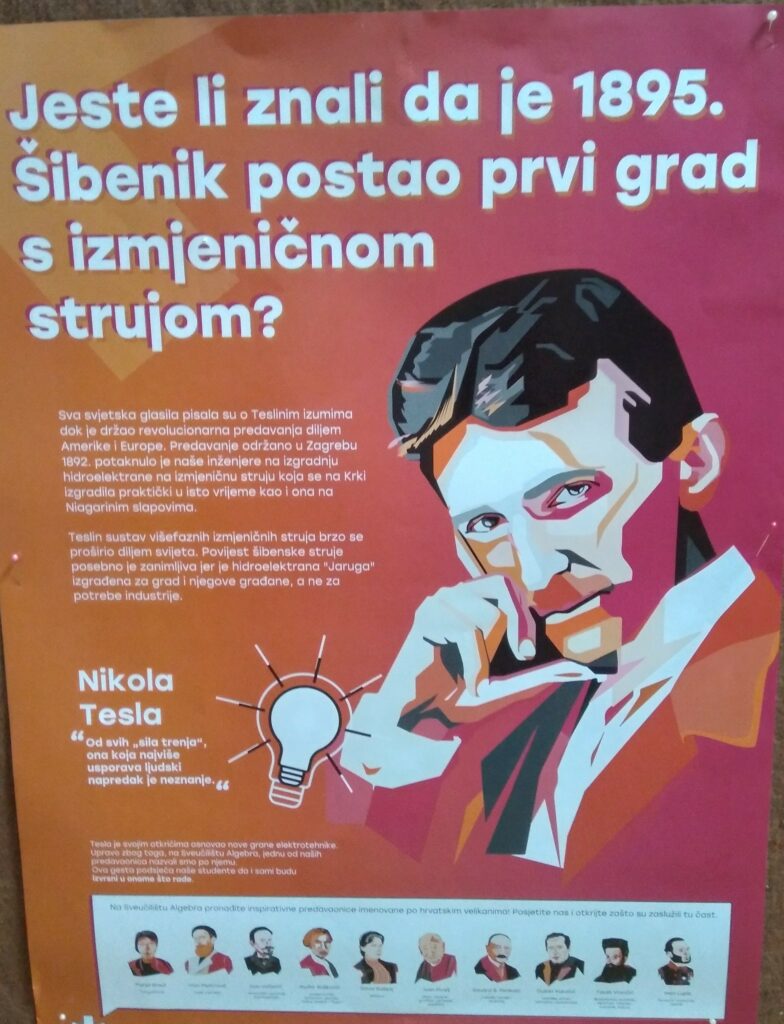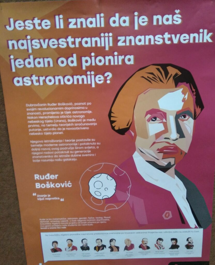 Dio izloženih plakata posvećen je hrvatskim velikanima/kankama poput Nikole Tesle, Slave Raškaj, Ruđera Boškovića, Dušana Vukotića, Ivana Vučetića i dr.