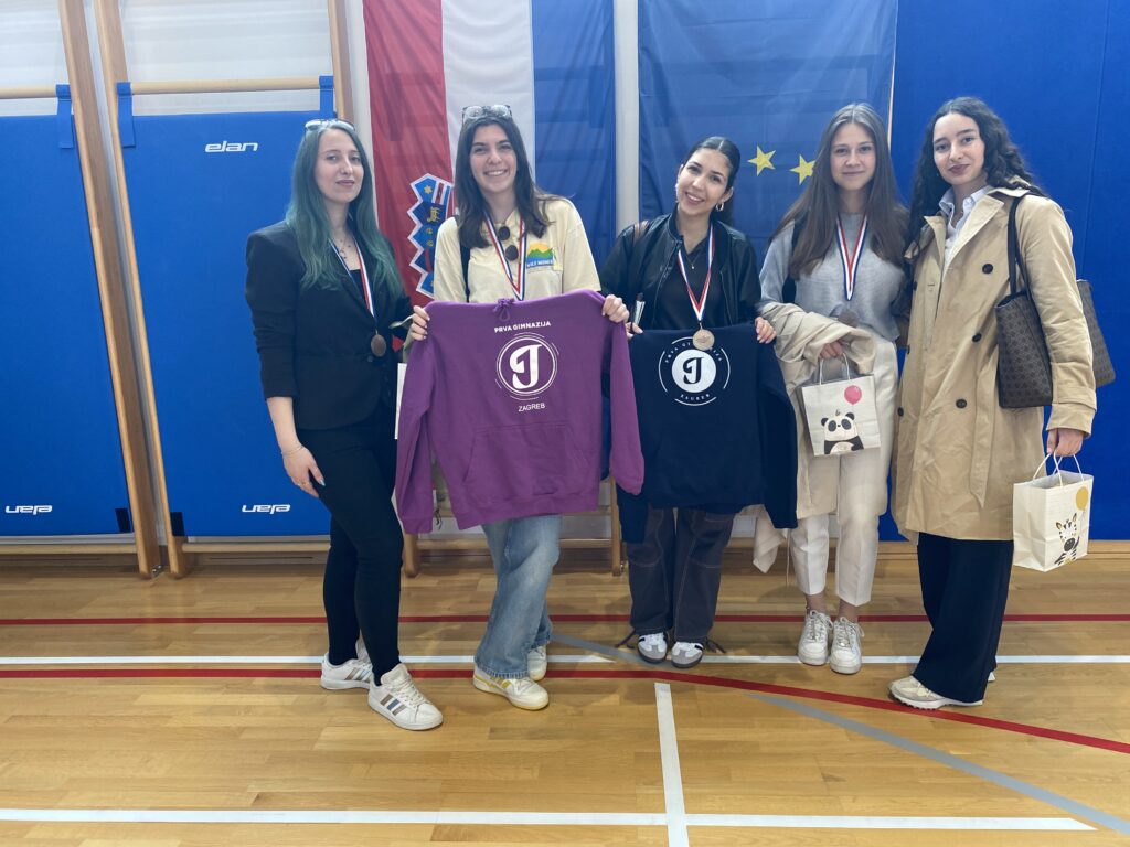 Učenice Karolina Jularić (4.e), Marta Predrijevac (4.b), Marta Rimac (4.b) i Tia Turčin (4.d) predstavljale su I. gimnaziju na Državnom natjecanju iz vjeronauka – vjeronaučna olimpijada koje je održano od 22. do 24. travnja u Baški (Krk). Učenice su postigle visoki rezultat 79/80 bodova čime su osvojile 3. mjesto.