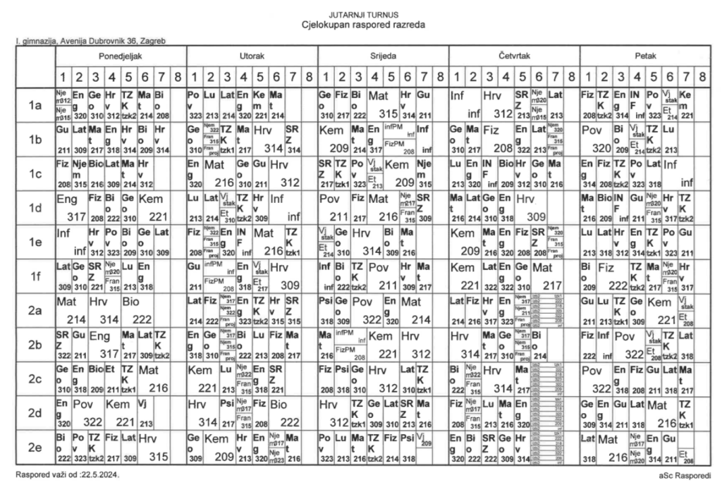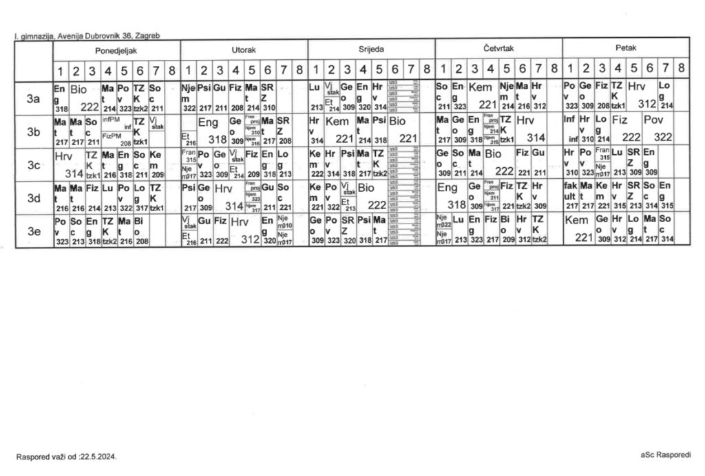 Raspored sati – vrijedi od 27. 5. 2024.