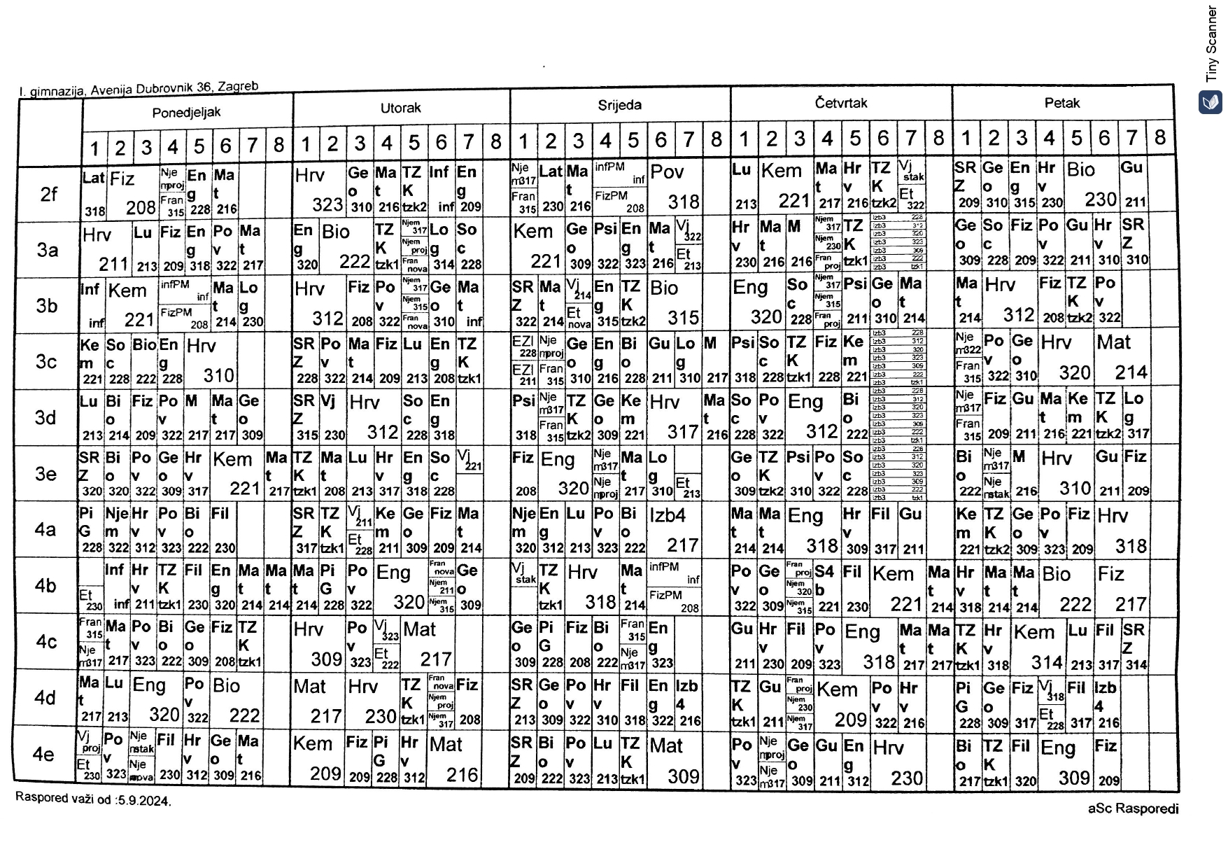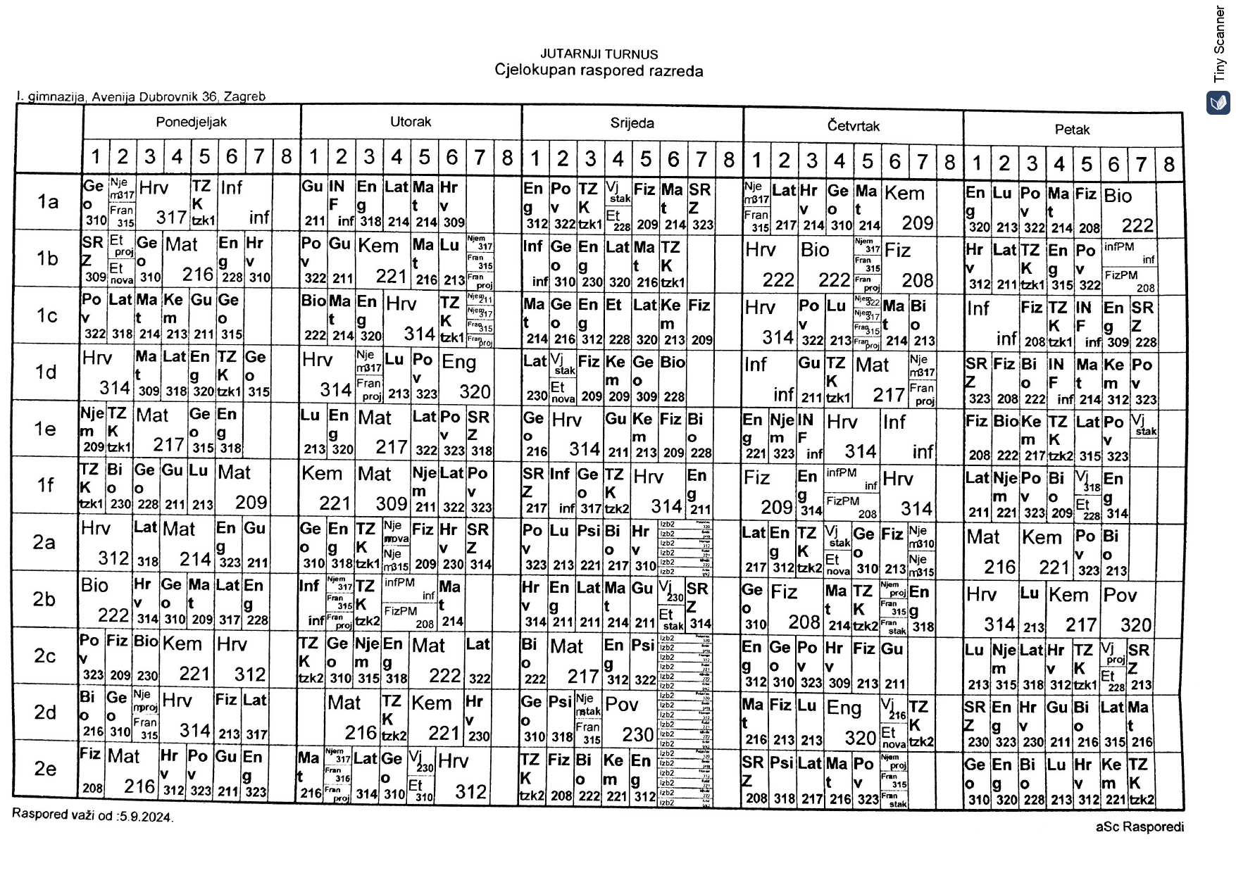 Raspored sati – šk. god. 2024./2025. Raspored sati 1. a – 2. e možete pogledati ovdje. Raspored sati 2. f – 4. e možete pogledati ovdje.