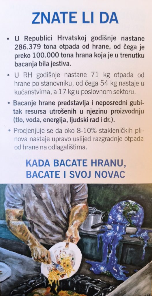 Povodom Međunarodnog dana osviještenosti o otpadu od hrane, učenici koji pohađaju izbornu biologiju 2 i njihov profesor Luka Miholić posjetili su 1.10.2024. izložbu “Hrana nije otpad, i ja mogu utjecati!” u Nacionalnoj i sveučilišnoj knjižnici. Bila je to završna aktivnost u našem rujanskom učenju o pravilnoj prehrani i nastanku otpada od hrane. U svijetu se svake godine 1/3 proizvedene hrane baci, a čak 70% te hrane je zapravo otpad iz kućanstva! To nam govori da svojim navikama i odgovornim ponašanjem možemo i moramo smanjiti otpad od hrane u svrhu očuvanja planeta, iskorjenjivanja gladi i smanjenja nejednakosti u društvu.