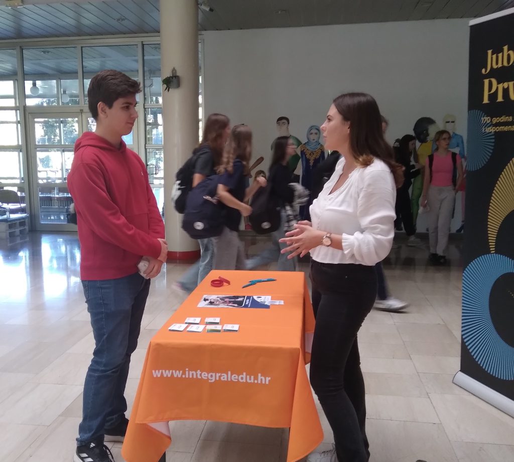 U okviru Školskog programa profesionalnog informiranja i usmjeravanja u utorak 8. 10. 2024. organiziran je IntegralEdu info kutak kojim su, za zainteresirane učenike i učenice, predstavljene mogućnosti studiranja i stipendiranja u zemljama Europe i šire.