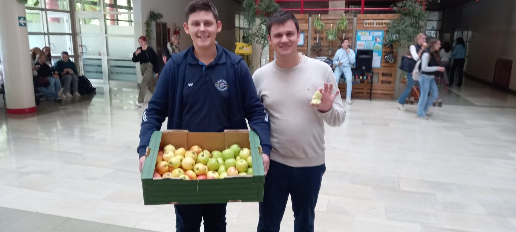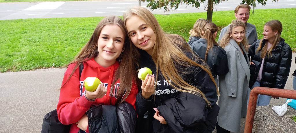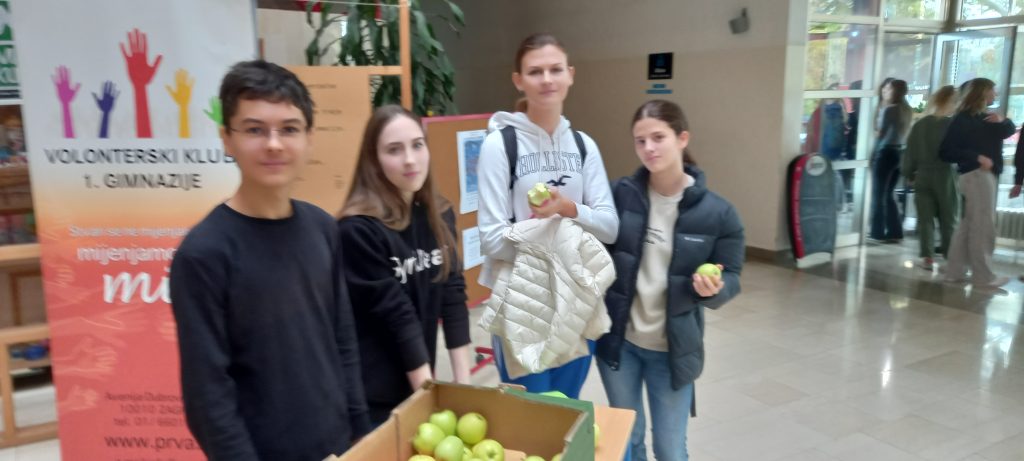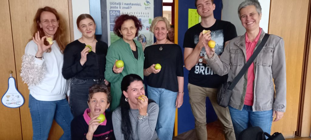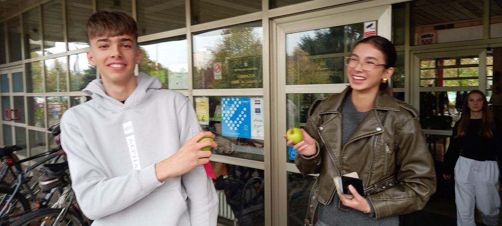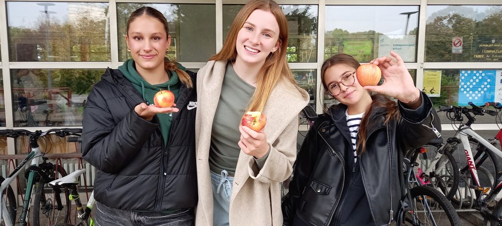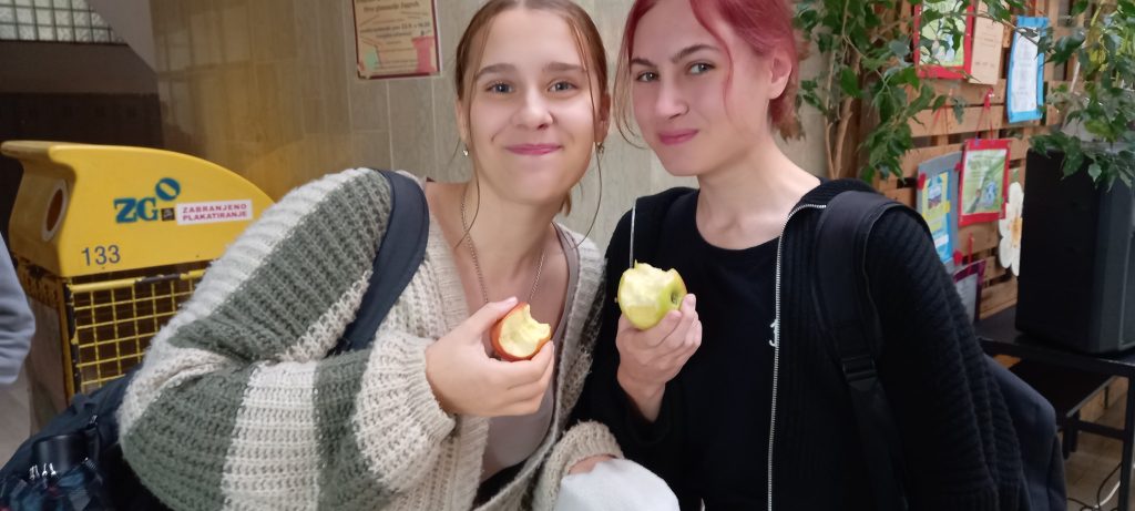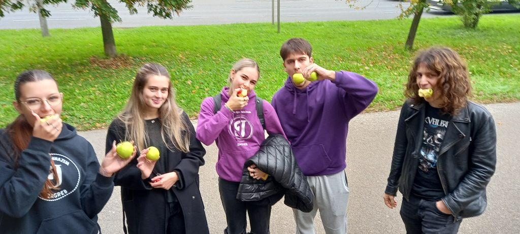 U tjednu od 21.10. 2024. smo imali priliku naučiti puno toga o vrijednostima jabuke. Pridružili smo se obilježavanju Dana jabuke kroz edukativni video, ali i dijeljenjem jabuke za doručak. Za kraj je je grupa naših učenika i njihovih gostiju iz Nizozemske (Erasmus projekt) ispred glavnog ulaza posadila stablo jabuke. Baš prava posveta zdravim navikama!