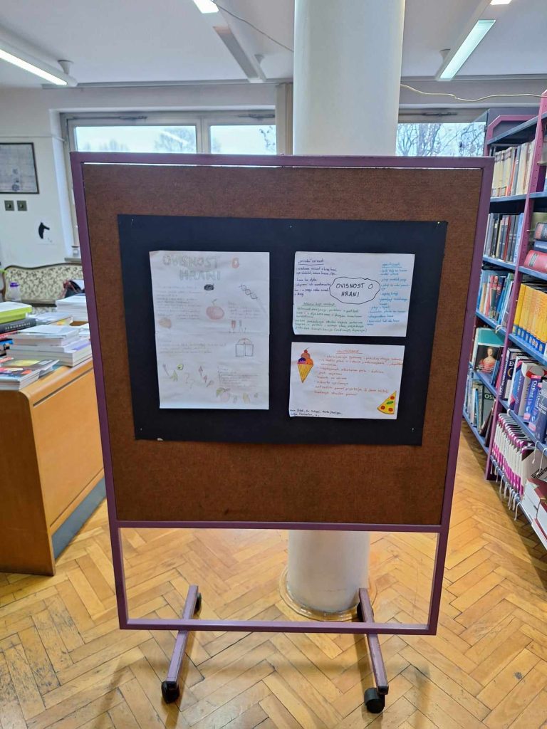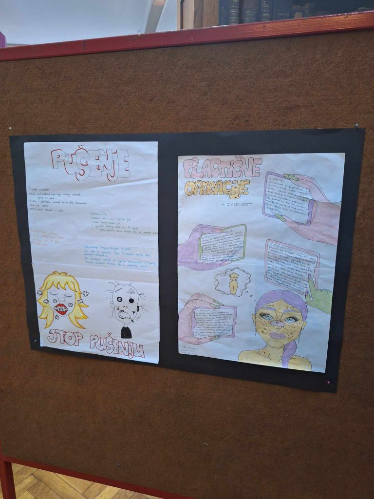 Povodom obilježavanja Mjeseca borbe protiv ovisnosti u školskoj knjižnici su izloženi plakati koji su nastali na nastavi etike, a radili su ih učenici trećih razreda pod mentorstvom prof. Josipe Dvoraček Užarević.