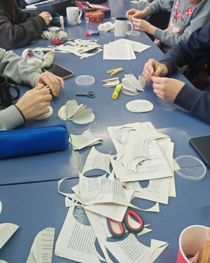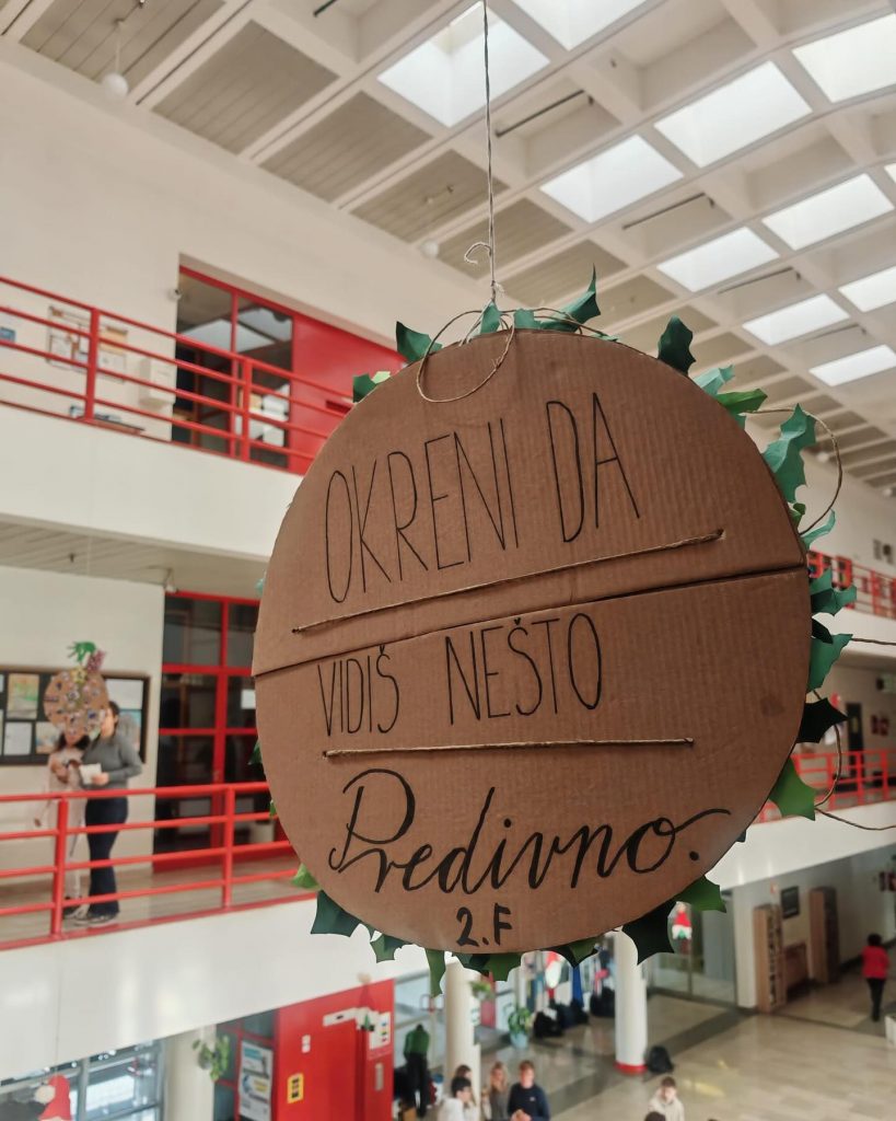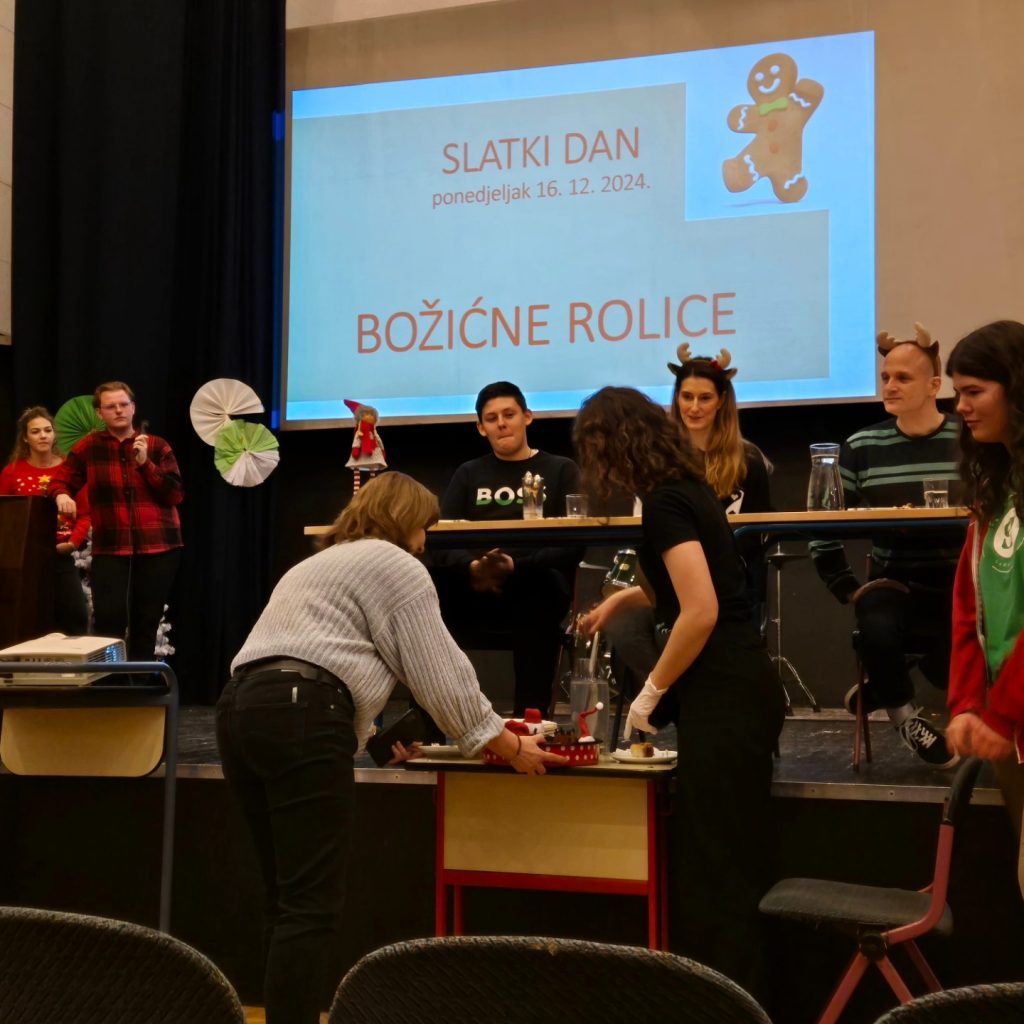 U srijedu, 18. prosinca nakon nastave održao se SPRETNI DAN u obliku Slatko-kreativne čajanke. Zanimljive i kreativne božićne aktivnosti vodila je profesorica Sekulić-Štivčević. Uz ukusne palačinke, kolačiće, čaj i pjesmu učenici su izrađivali prigodne božićne ukrasne predmete od starih knjiga i podarili novi život starim stvarima.