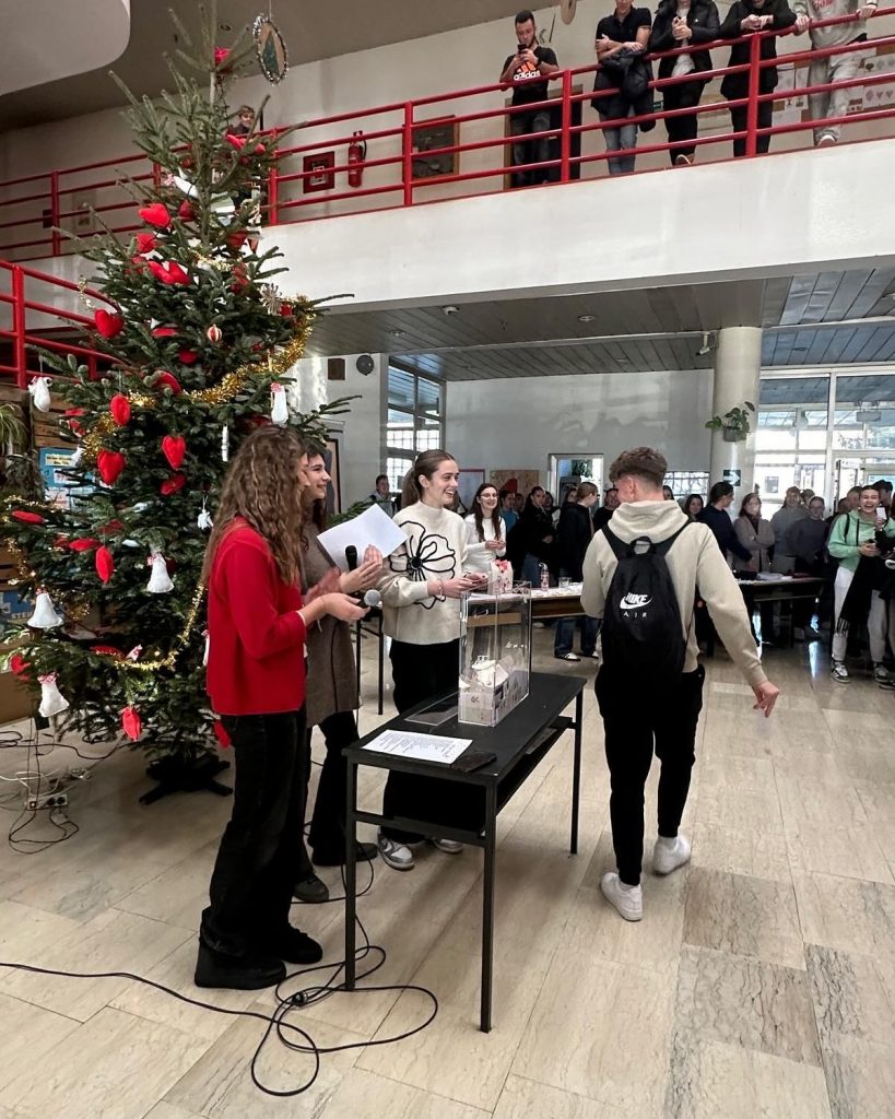 Četvrtog dana, 19. prosinca u školi smo imali SRETNI DAN kada se održala zanimljiva Božićna tombola s nagradama iznenađenja. Sretnici su osvojili fantastične nagrade, a među njima su se našli potpisan Barcelonin dres igrača Danija Olma, hudica i trenirka s logom Prve gimnazije, majice s našim školskim motivima i još mnoštvo iznenađenja.