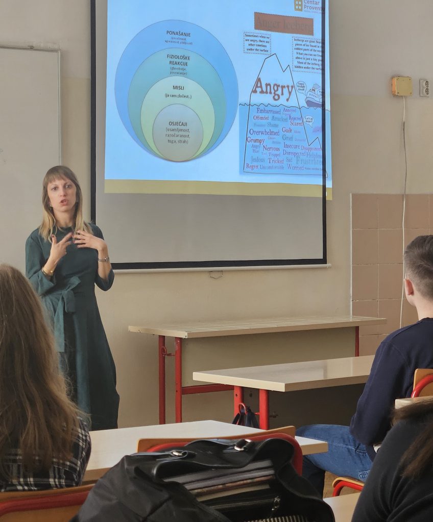 Na nastavi izborne psihologije za druge razrede 5.3.2025. gostovala je Tea Knežević registrirana terapeutkinja igrom i psihoterapeutkinja transakcije analize iz Centra za psihoterapiju i edukaciju Proventus. Psihoterapeutkinja je opisala svoj profesionalni put od srednjoškolskih dana do danas. Osim što provodi terapiju igrom s djecom, bavi se i psihoterapijom odraslih te vodi brojne edukacije za stručnjake koji rade s djecom i mladima. U prezentaciji smo imali priliku vidjeti sobu punu igračaka u kojoj se provodi terapija igrom i mnogobrojne naslovnice slikovnica s terapeutskim pričama za djecu čija je autorica psihoterapeutkinja Knežević. Druženje je u opuštenoj atmosferi trajalo dva školska sata, a učenici su tijekom predavanja često postavljali pitanja na koja je psihologinja rado odgovorila.