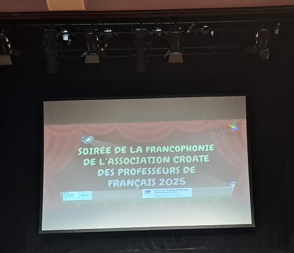 U petak, 21. ožujka 2025. godine održana je još jedna Večer Frankofonije, Večer Udruge profesora francuskoga jezika koja se tradicionalno odvija u ožujku, mjesecu Frankofonije. Naši učenici odazvali su se i ove godine, kao i mnogih godina ranije, ove godine s pjesmom francuskog pjevača Slimana: