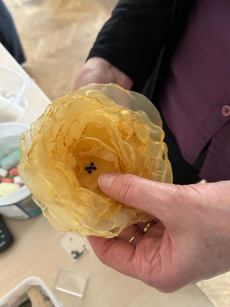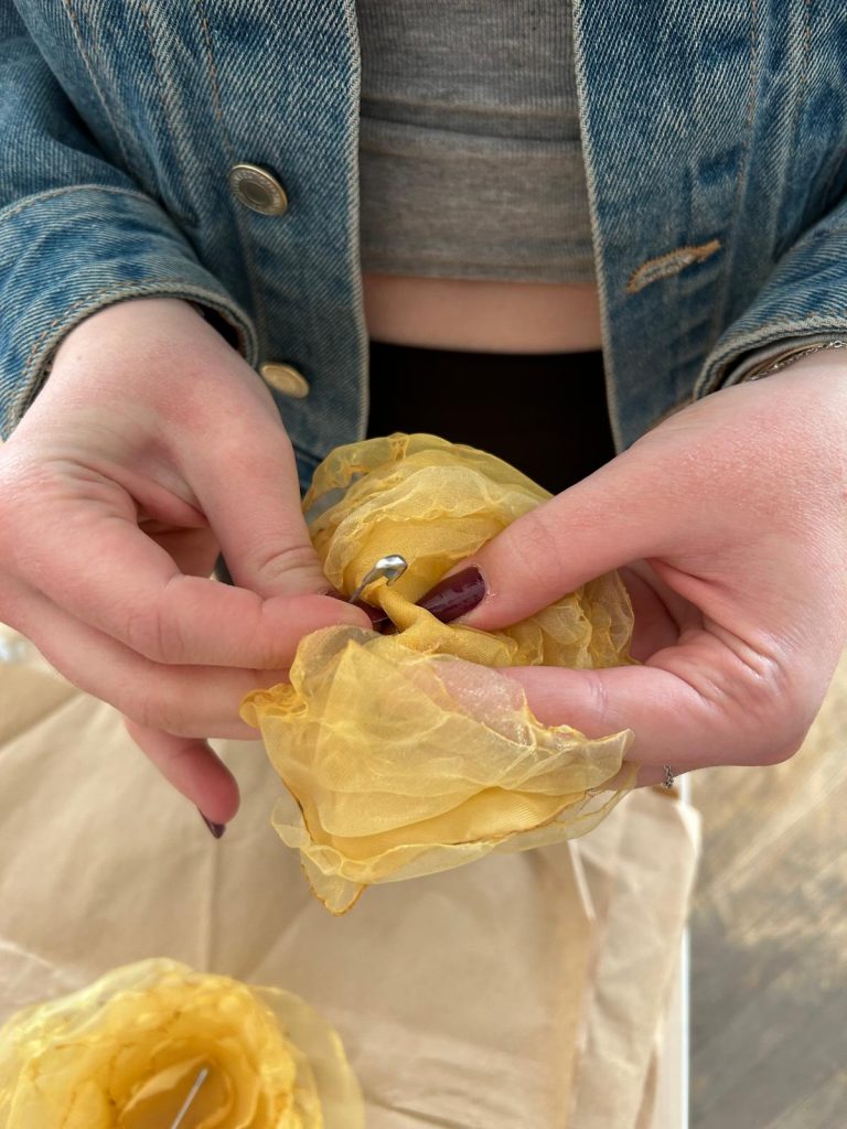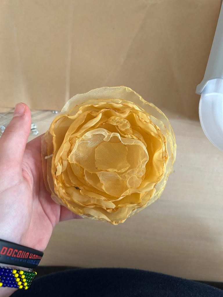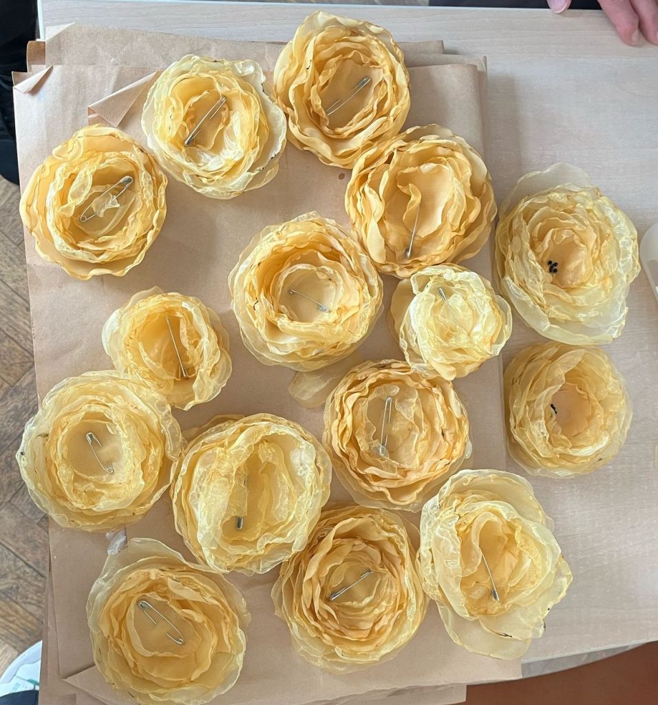 Kako bi promovirali kinč članovi učeničke zadruge Iz Prve ruke i sudionici projekta Njegovanjem tradicije do digitalnog detoksa izradili su nosivi kinč. Na ovaj način promičemo nematerijalnu kulturnu baštinu naših krajeva. Ukrasi, najčešće cvijeće, izrađuje se od papira. Takav ukrasi su nježni i lako se mogu oštetiti. Sekcija Kreativci izradila je cvjetove koji se mogu nositi kao broš ili kao ukras u kosi. Za izradu su koristili stare zavjese i perlice. Izrada ovakvih ukrasa opušta i dobrodošla je nakon napornog dana.