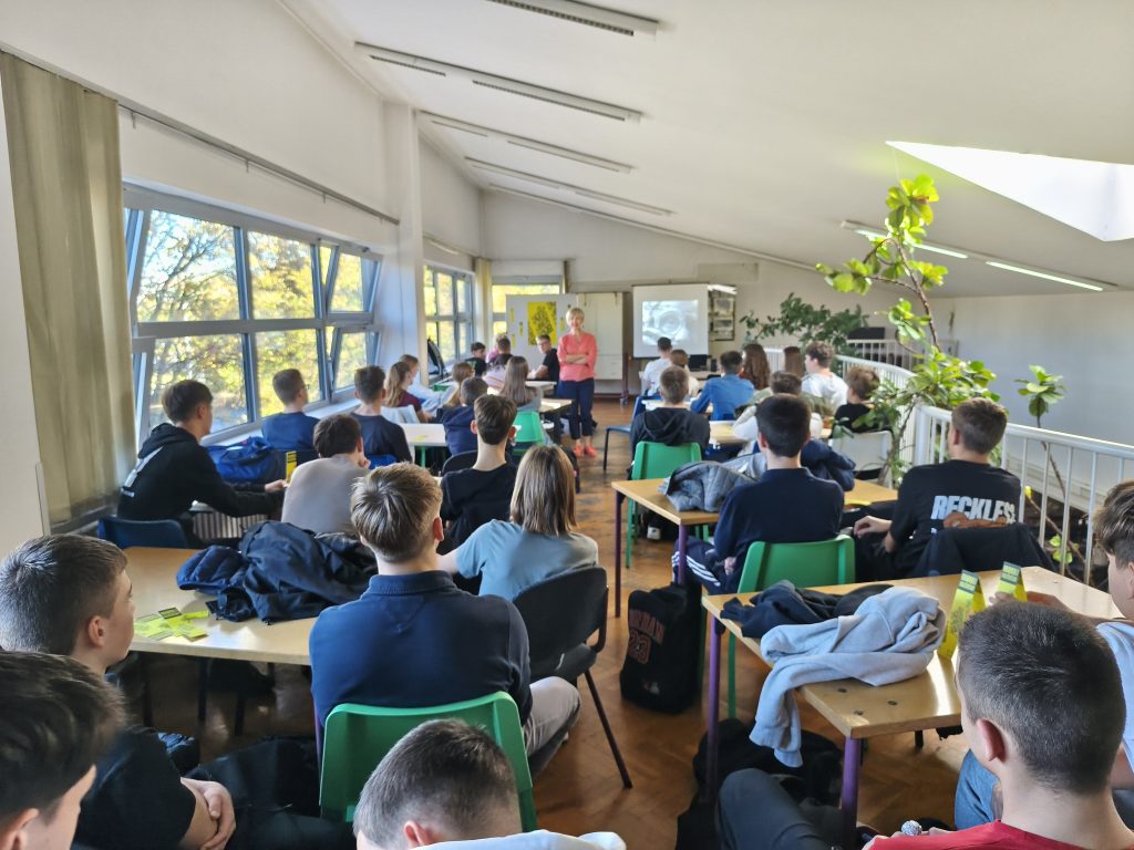 Tim smo povodom 3. studenoga na galeriji naše prekrasne knjižnice ugostili knjižničarku Prirodoslovne škole Vladimira Preloga prof. Kseniju Banović, koja nam je prenijela svoje bogato iskustvo prevođenja s bugarskoga jezika za što je primila niz nagrada u Hrvatskoj i inozemstvu. Književnomu susretu nazočili su učenici 1. b i 1. e razreda u pratnji prof. Sikavica Joler i naše knjižnjičarke prof. Barbutov Krsteve.