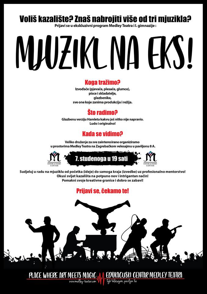 U šk.god. 2018./19. u suradnji s teatrom Medley provodimo projekt Mjuzikl na eks u kojem naši učenici imaju prilike kreirati i izvoditi mjuzikl verziju Hamleta. Rezultate očekujemo na Božićnoj priredbi!