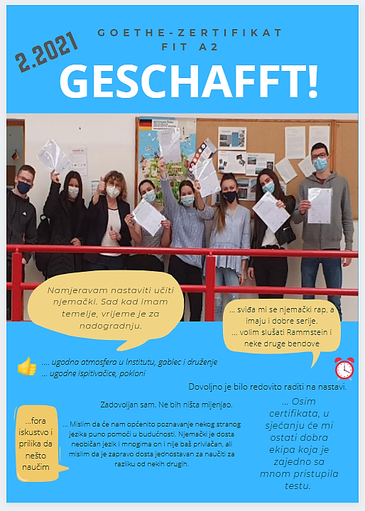 U subotu, 8. svibnja, sudjelovali smo na prvom izdanju Festivala srednjoškolskog frankofonog kazališta u Zagrebu. Riječ je o projektu međugradske i međunarodne suradnje srednjih škola kao mjesta susreta učenika srednjih škola koji uče francuski jezik. Predstave prvog izdanja zagrebačkog Festivala srednjoškolskog frankofonog kazališta prikazane su na Facebook-live dok se u prostoru akademske Scene F22 u Frankopanskoj 22 snimala sama ceremonija. Na Festivalu su Opširnije