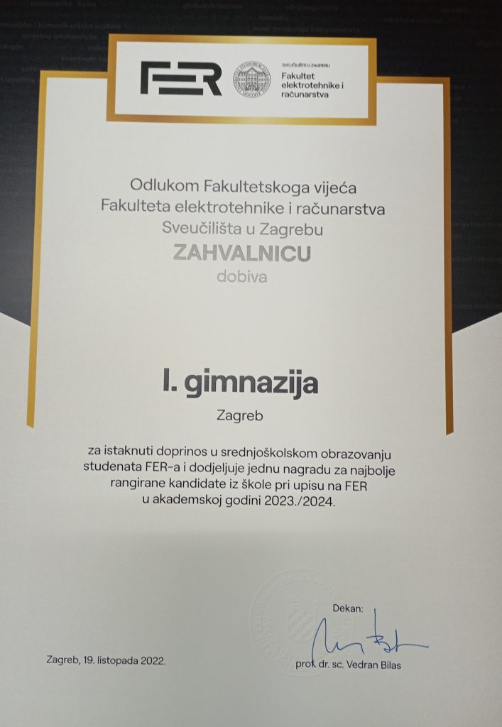 Za rođendan Grada Zagreba, 31. 5. 2023. dodijeljene su i Nagrade Grada Zagreba, a jedna od njih i našoj školi. Drago nam je da je prepoznat trud koji ulažemo u odgojno-obrazovni proces, a posebno solidarnost koju smo iskazali prema školama pogođenim potresom.