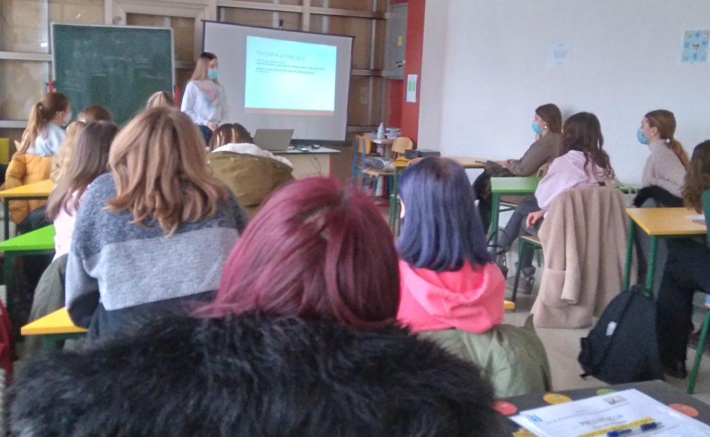 U okviru Školskog programa profesionalnog informiranja i usmjeravanja u utorak 14. prosinca 2021. započeli smo ciklus predstavljanja pojedinih fakulteta u suradnji s bivšim učenicima I. gimnazije. Tako je Lana Bogović, studentica 5. godine studija soc. pedagogije održala prezentaciju za grupu od 15 zainteresiranih maturantica i učenica trećih razreda o tri studijska programa Edukacijsko- rehabilitacijskog fakulteta (ERF): studij soc. pedagogije, studij Opširnije