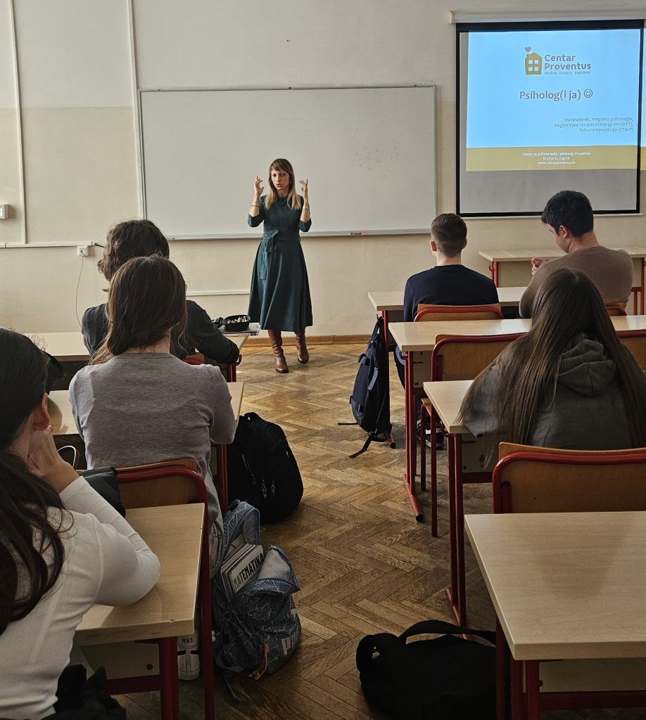 Na nastavi izborne psihologije za druge razrede 5.3.2025. gostovala je Tea Knežević registrirana terapeutkinja igrom i psihoterapeutkinja transakcije analize iz Centra za psihoterapiju i edukaciju Proventus. Psihoterapeutkinja je opisala svoj profesionalni put od srednjoškolskih dana do danas. Osim što provodi terapiju igrom s djecom, bavi se i psihoterapijom odraslih te vodi brojne edukacije za stručnjake koji rade s djecom i Opširnije